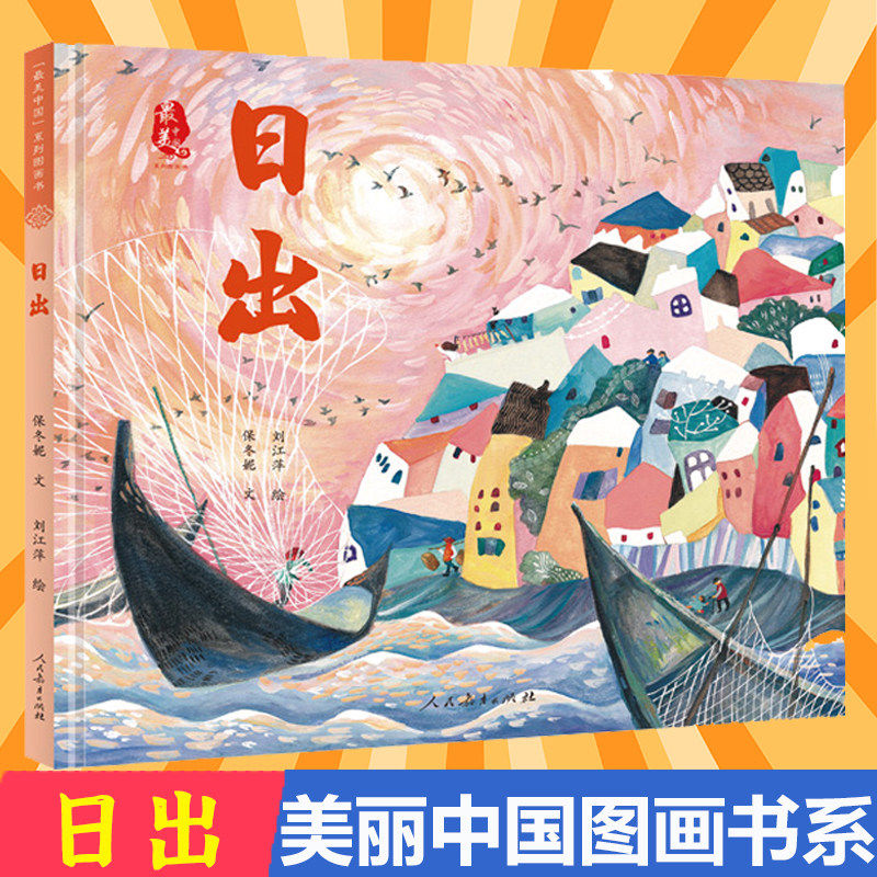 日出绘本一年级下册美中国系列图画书人民教育出版社保冬妮诗歌渲染七彩斑斓阳光的色彩书谱写东海日出的壮美飞扬之歌80厘米超长书