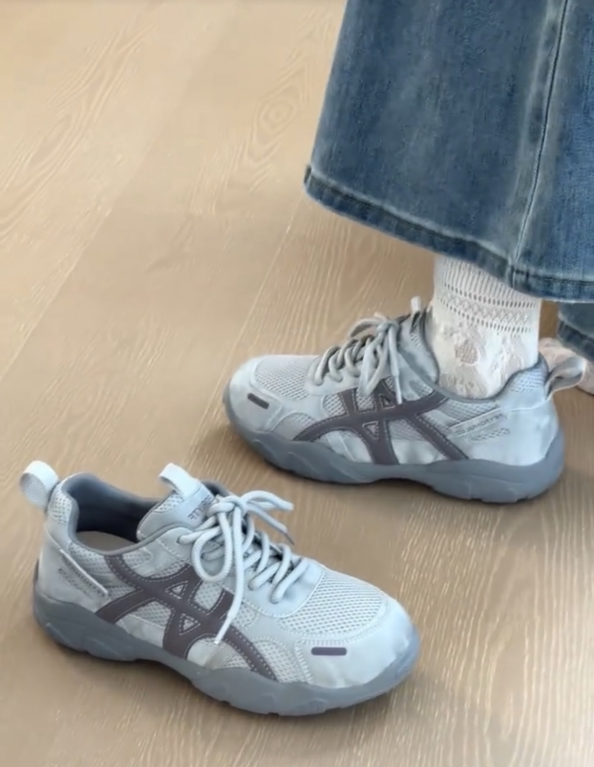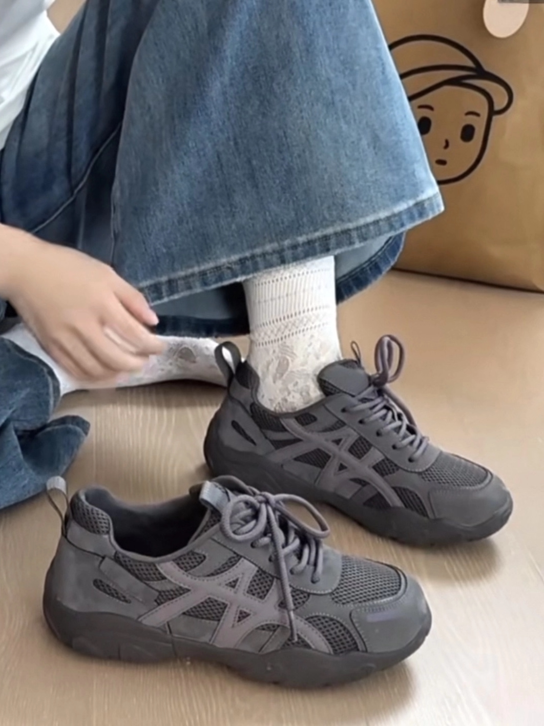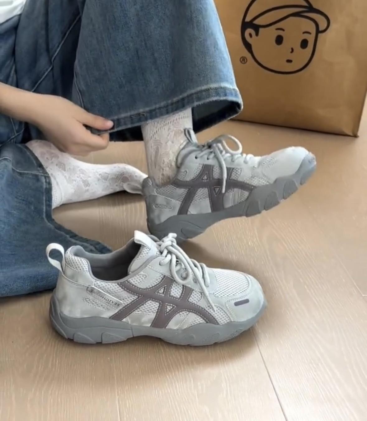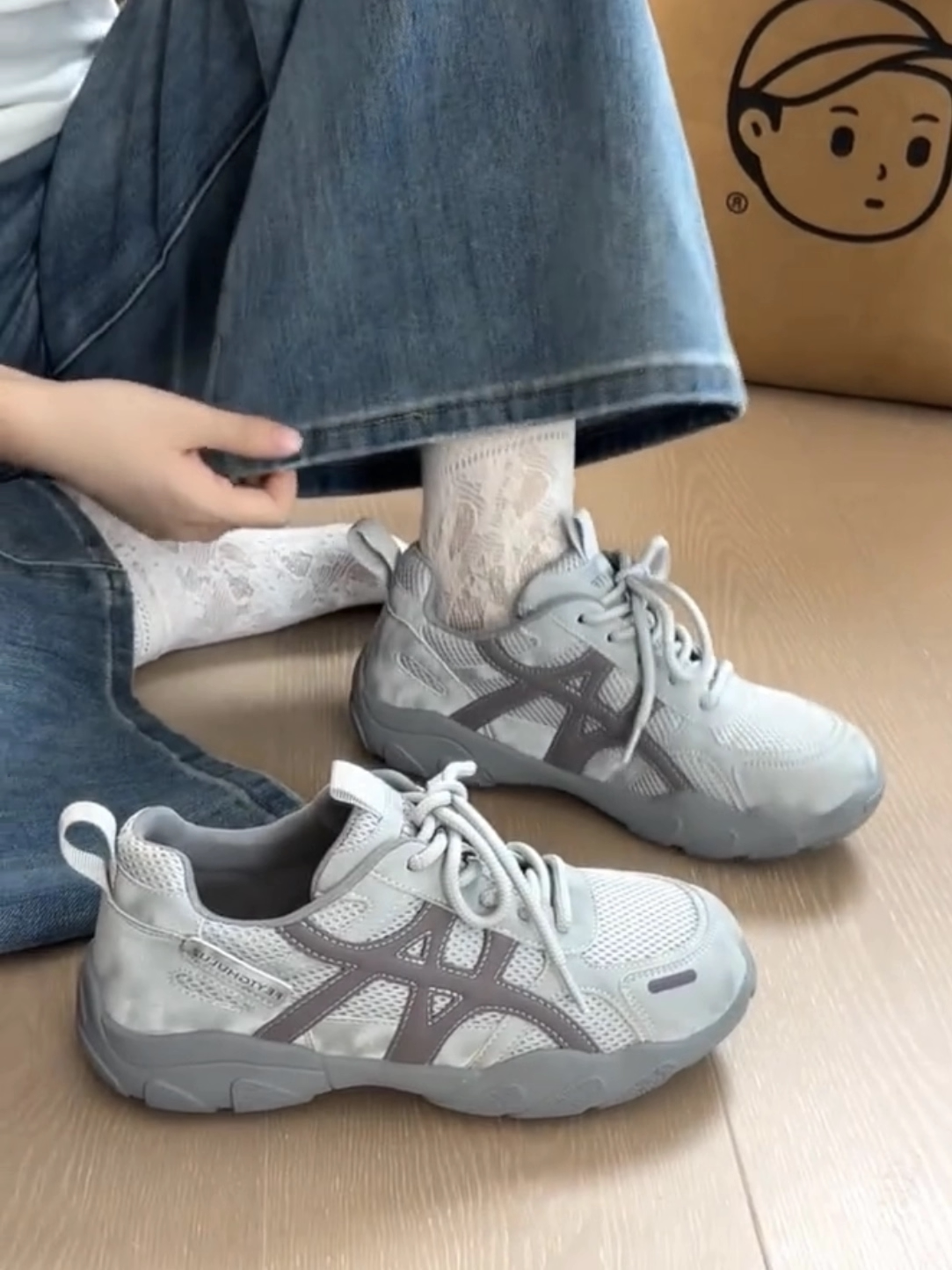 复古厚底德训鞋女2026新款灰色网面休闲透气运动鞋百搭增高登山鞋