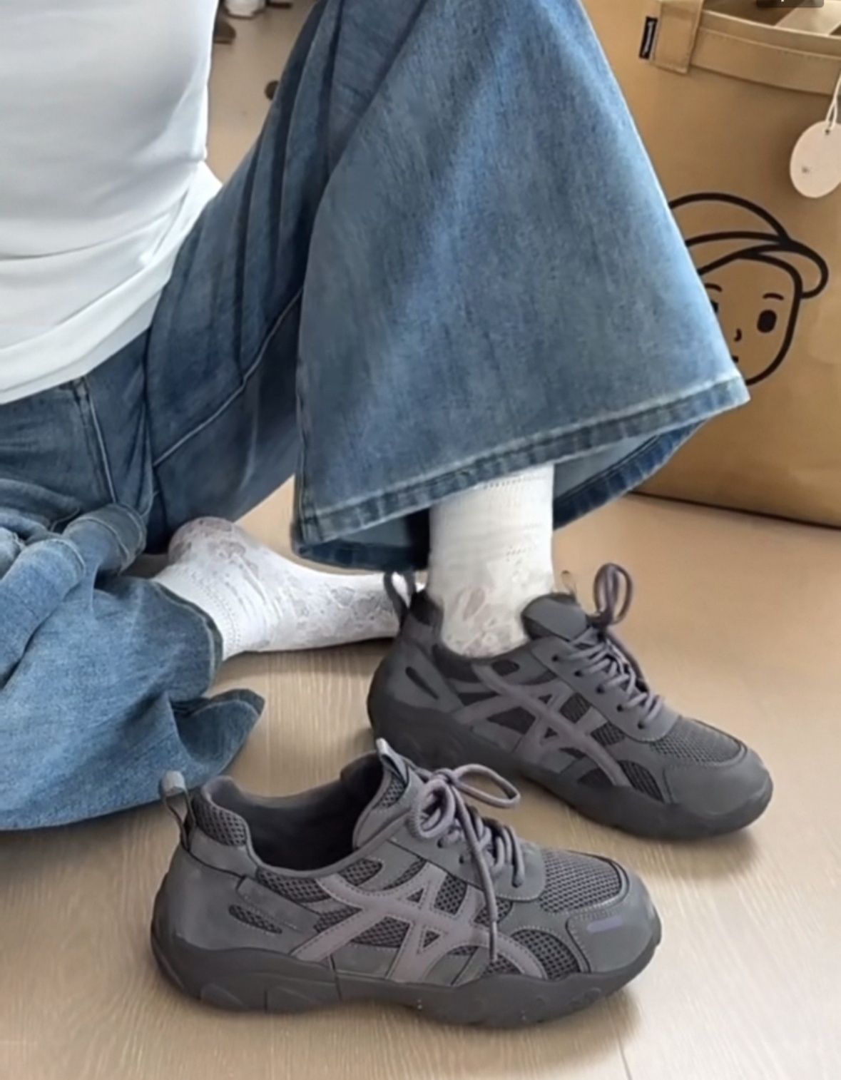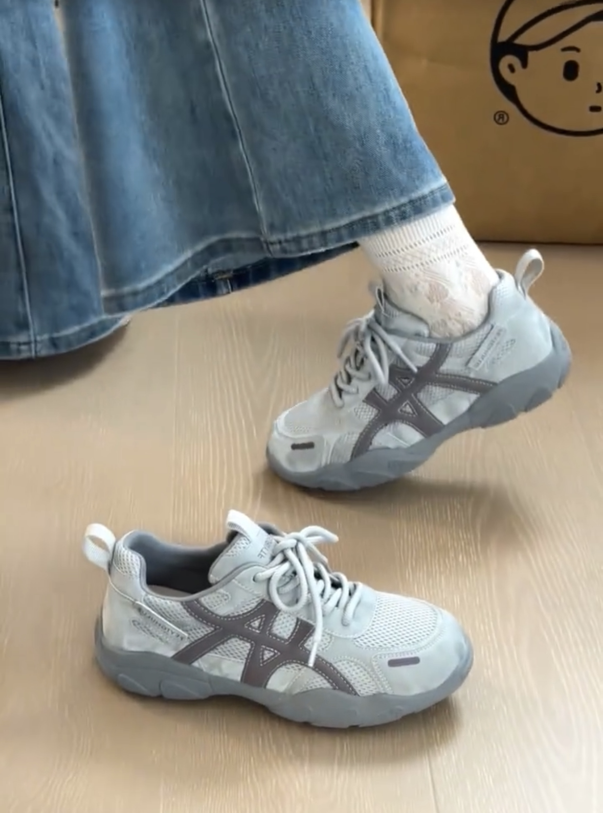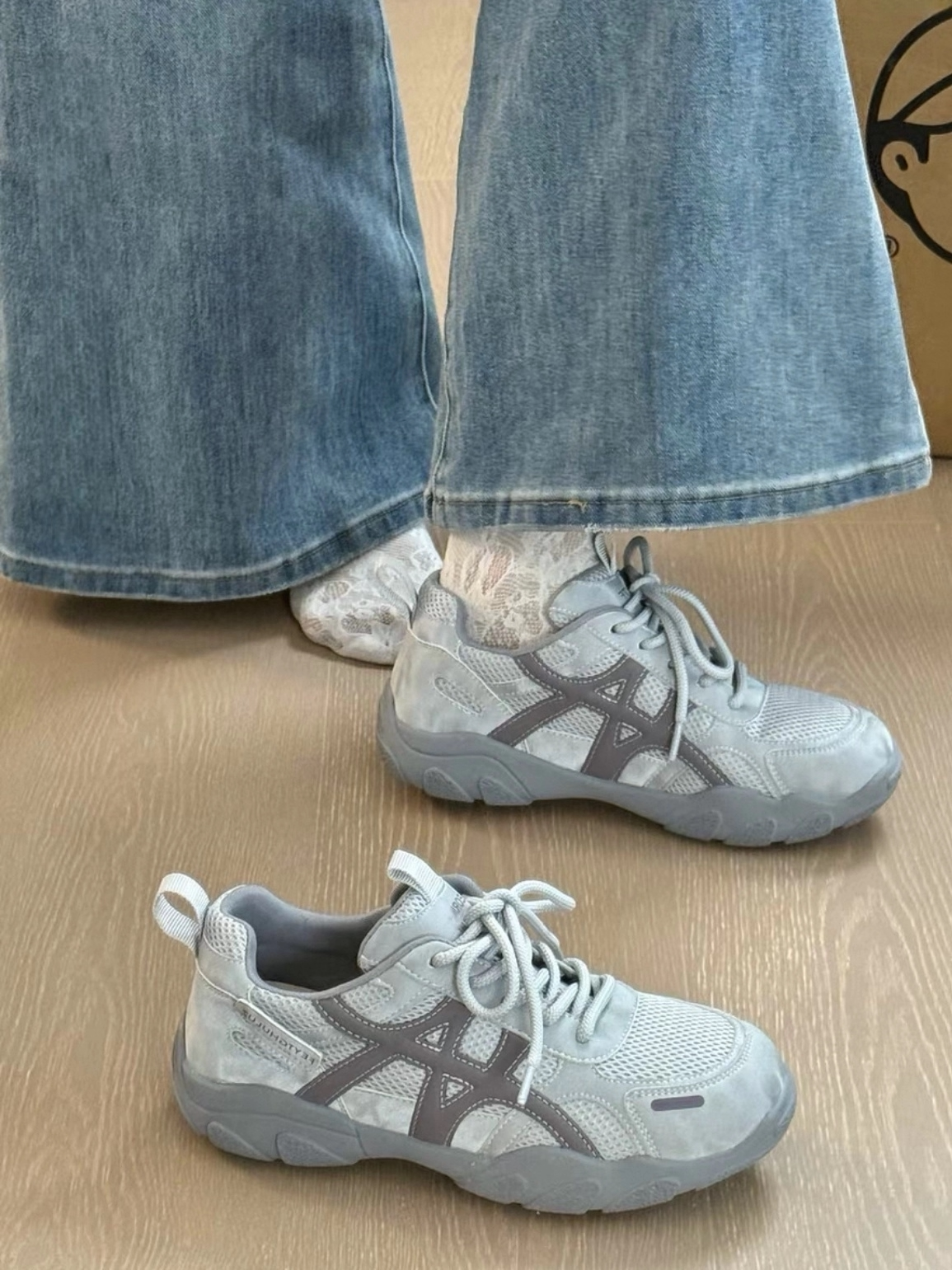 复古厚底德训鞋女2026新款灰色网面休闲透气运动鞋百搭增高登山鞋
