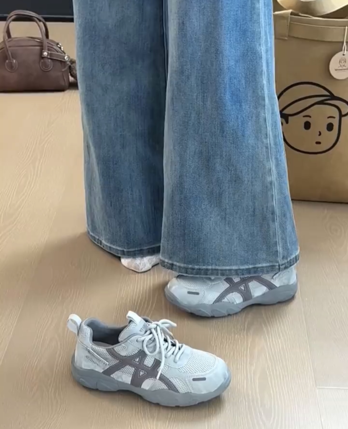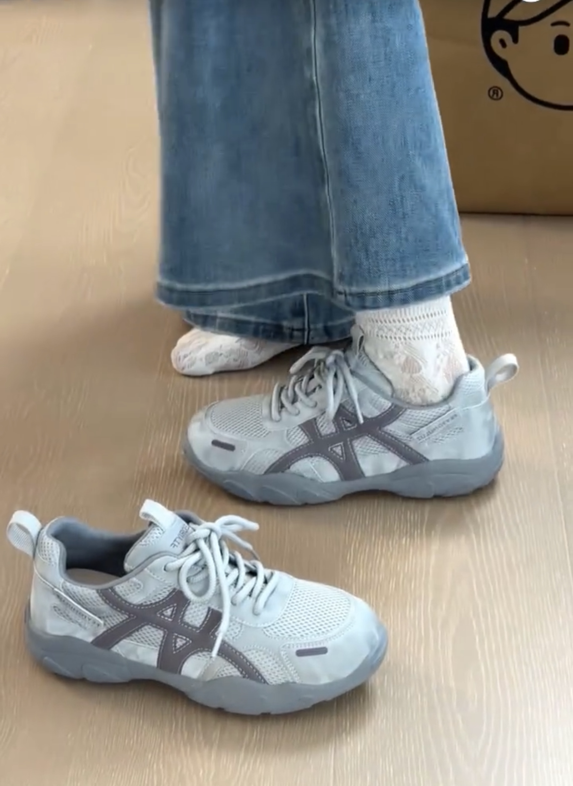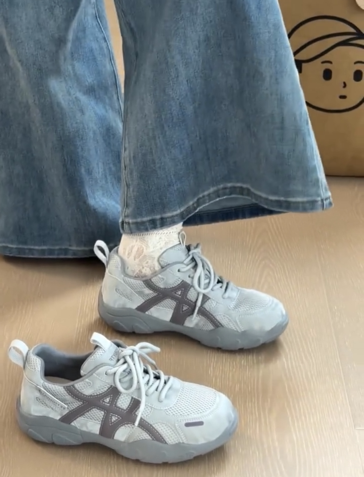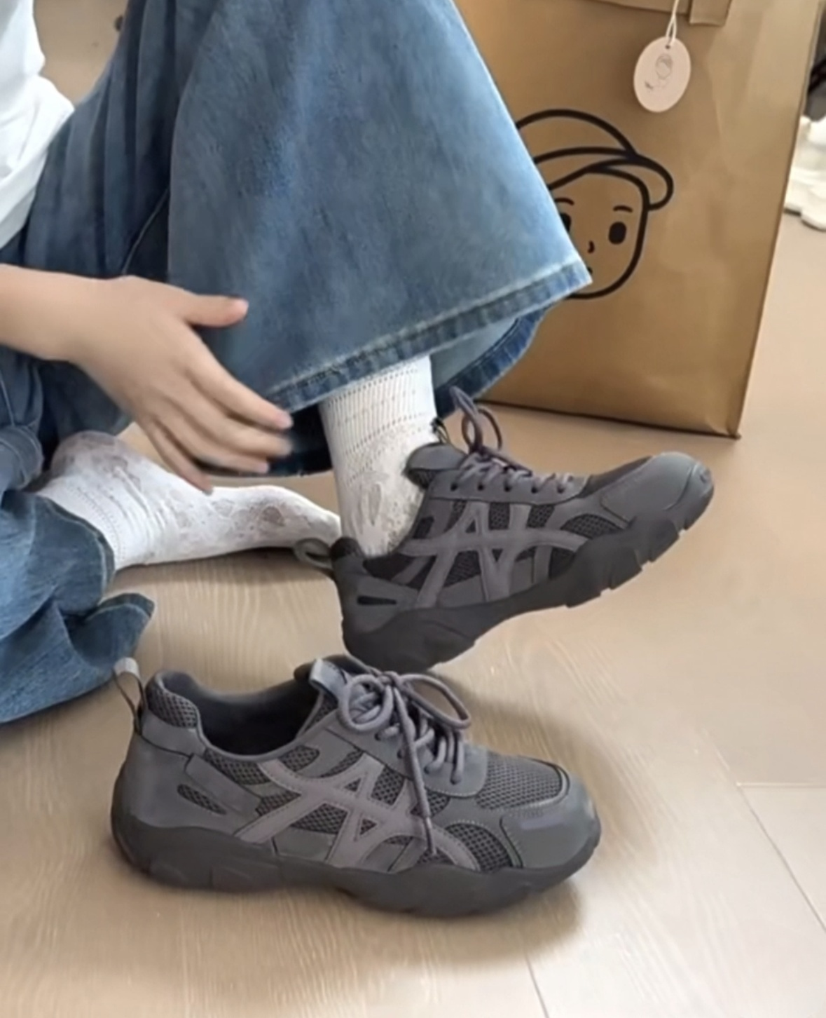 复古厚底德训鞋女2026新款灰色网面休闲透气运动鞋百搭增高登山鞋