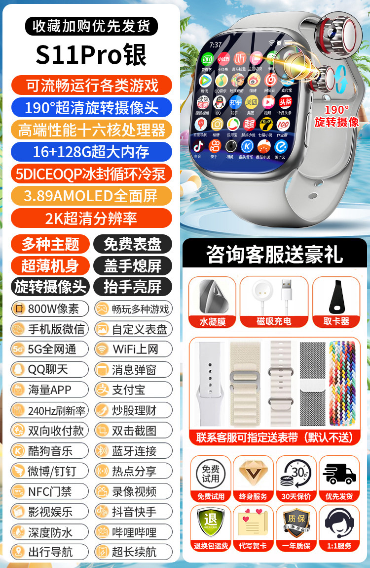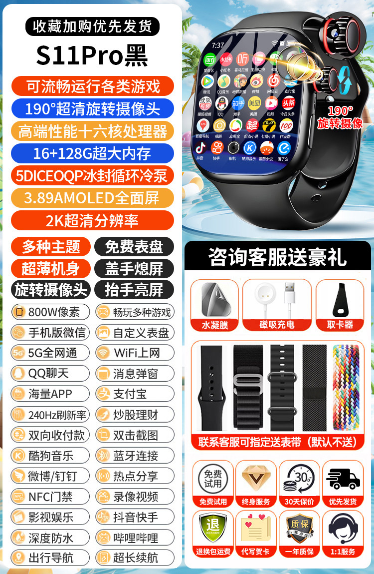 双系统【官方正品】华强北新款Watchs11智能电话手表可插卡多功能蓝牙运动青少年学生初中高中生专用男士女款