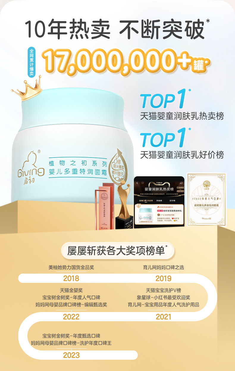 启初儿童面霜胚米3.0婴儿高保湿特润舒缓宝宝霜秋冬补水润肤乳