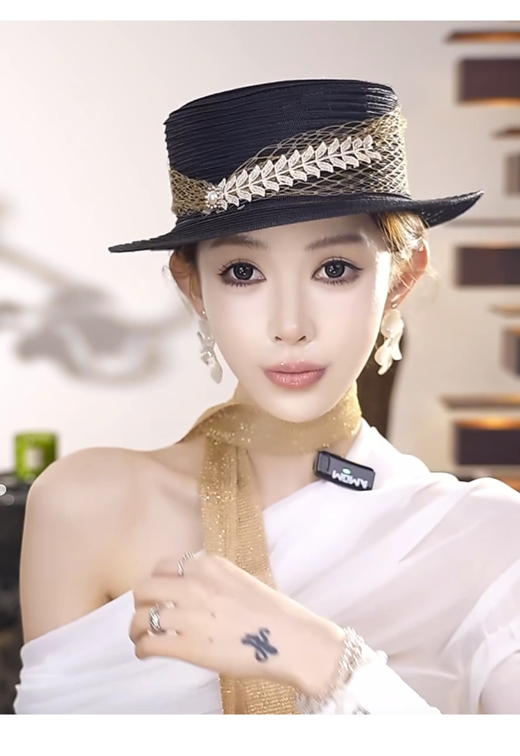 女士短檐网纱礼帽女法式赫本风网红平顶遮阳帽气质时髦小沿沙滩帽