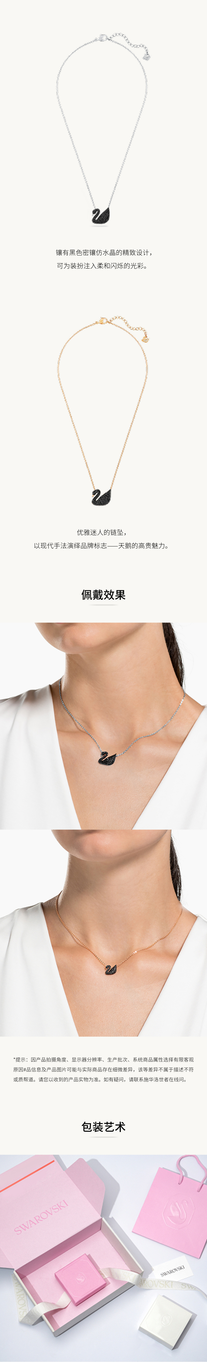 【圣诞礼物】施华洛世奇Swan黑天鹅(大)项链吊坠配饰高级