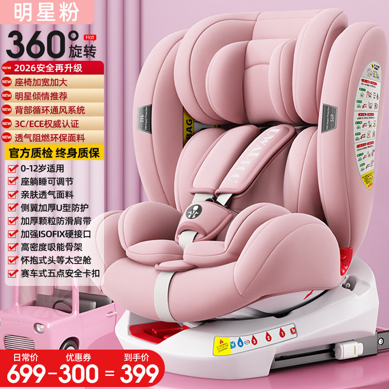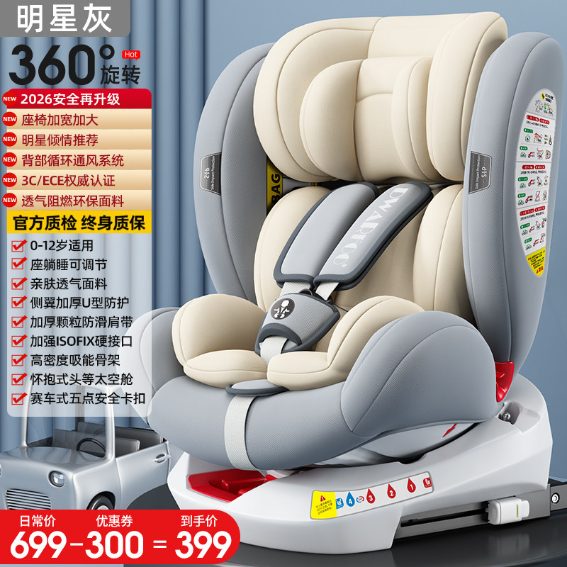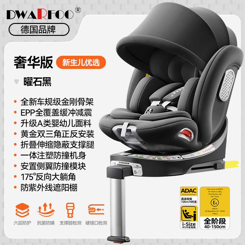 德国DWARFOO儿童安全座椅汽车用婴儿宝宝车载0到12岁便携式坐椅躺