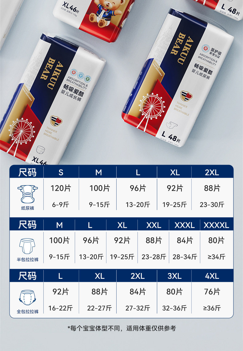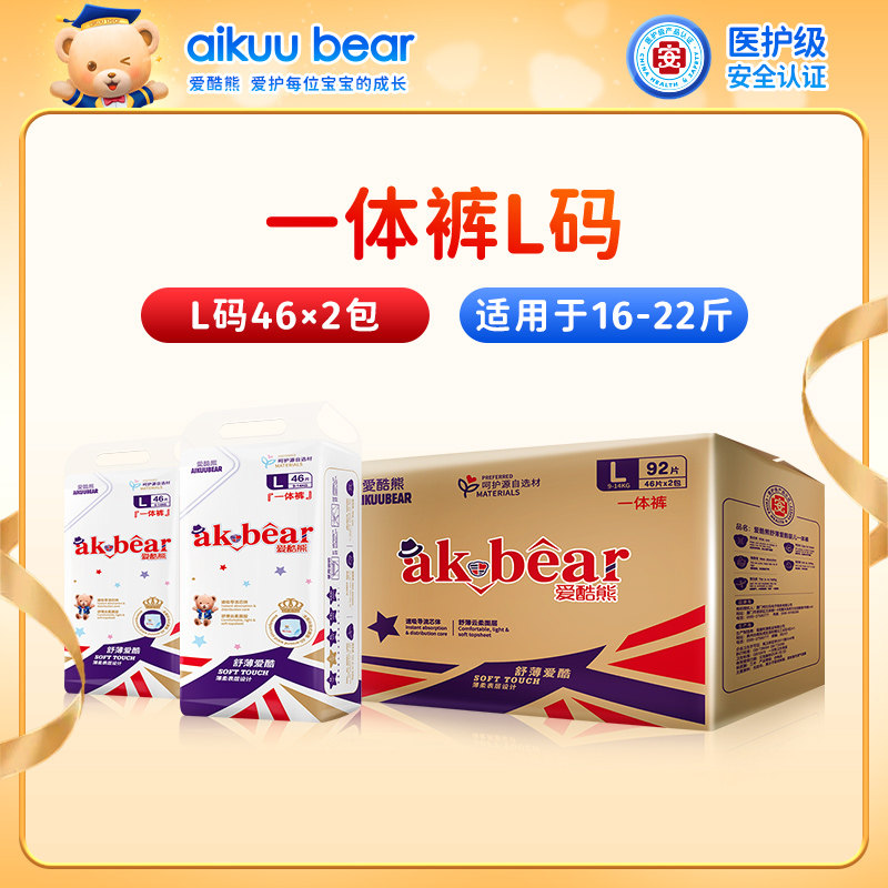 爱酷熊拉拉裤春季超薄透气纸尿裤婴儿男女宝宝专用新初生尿不湿