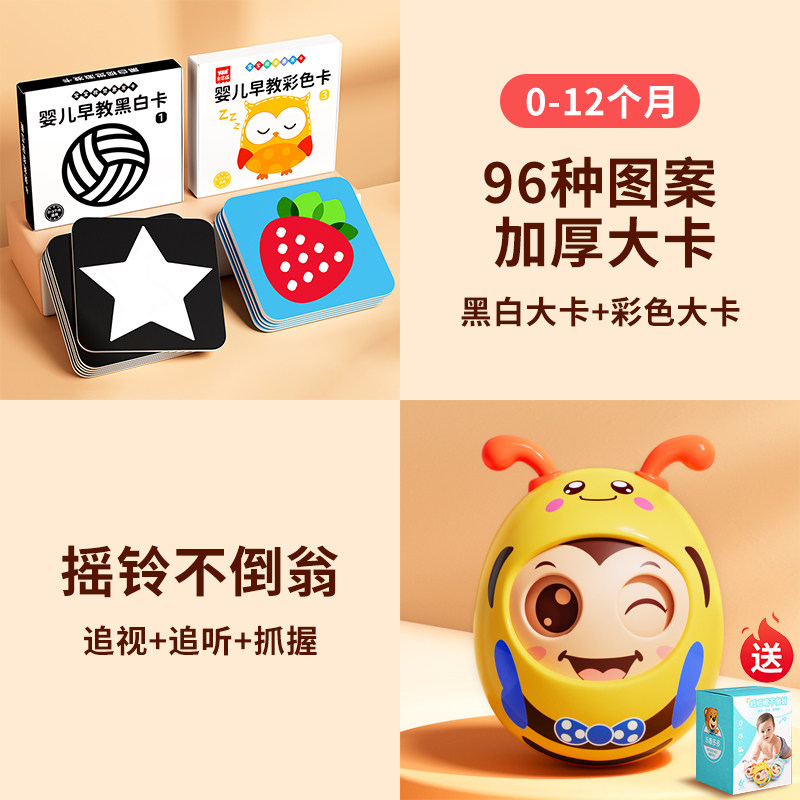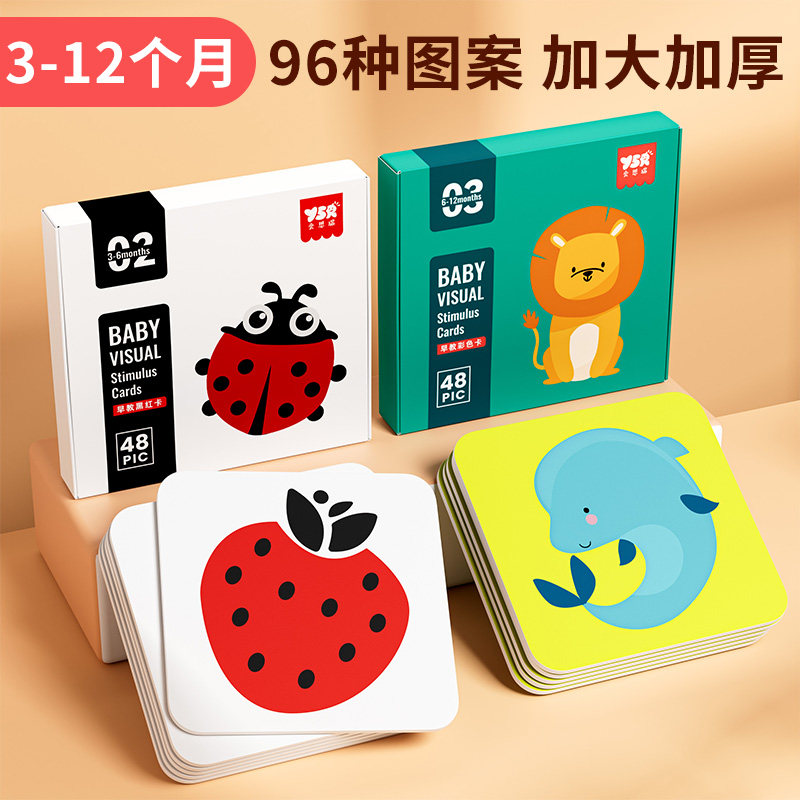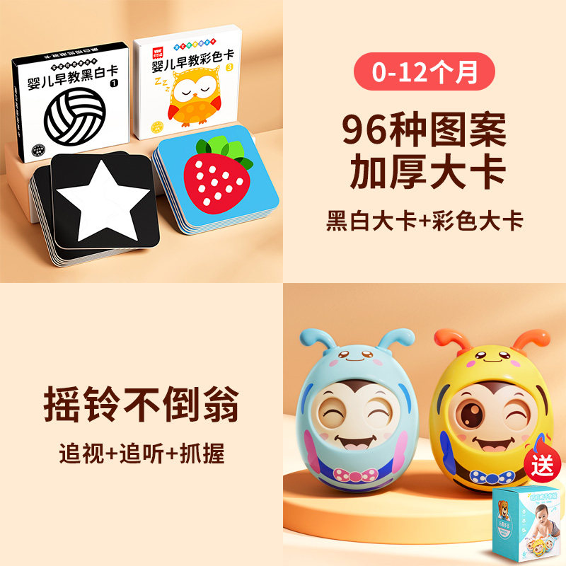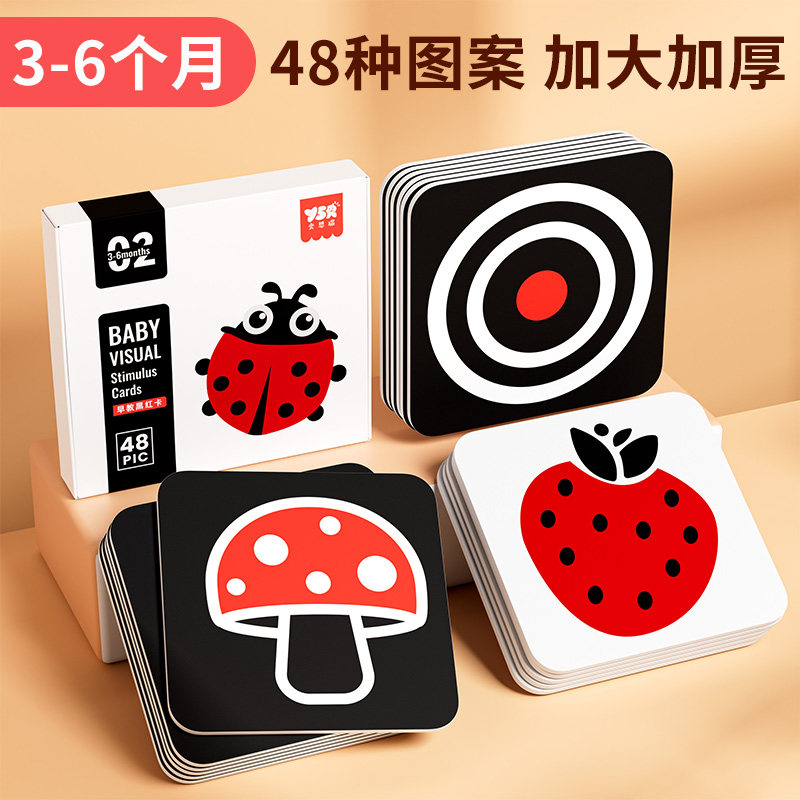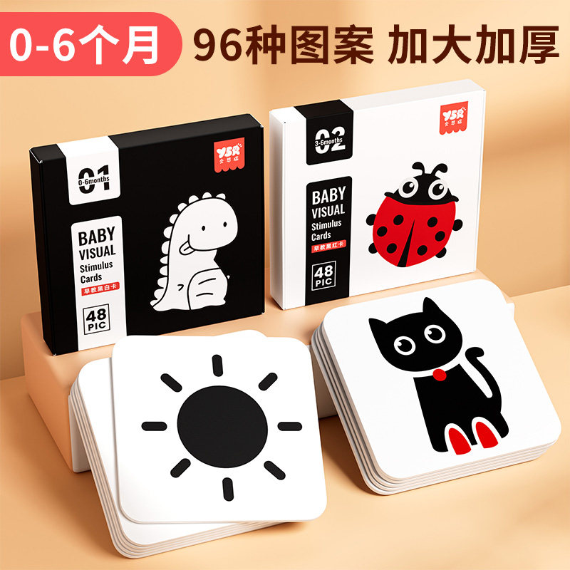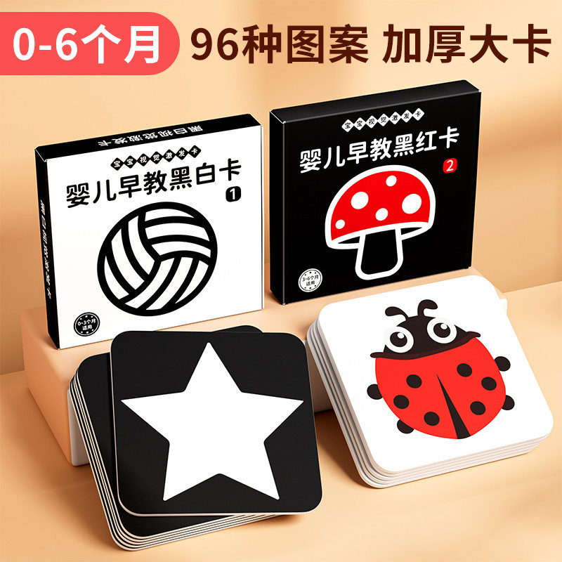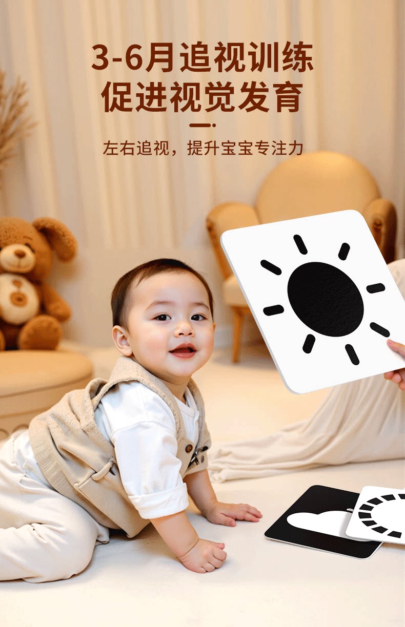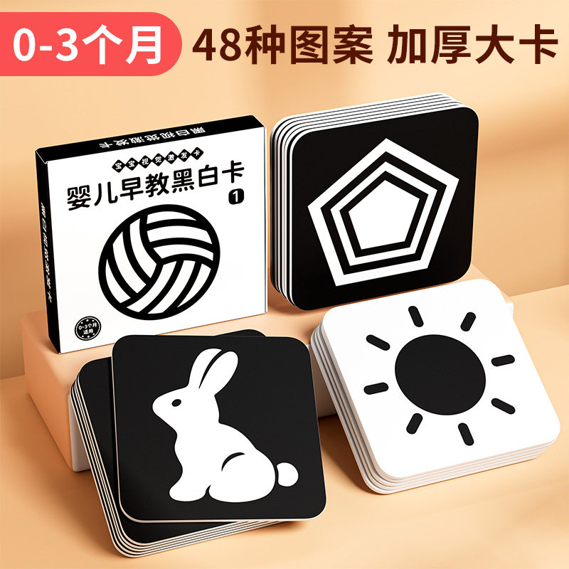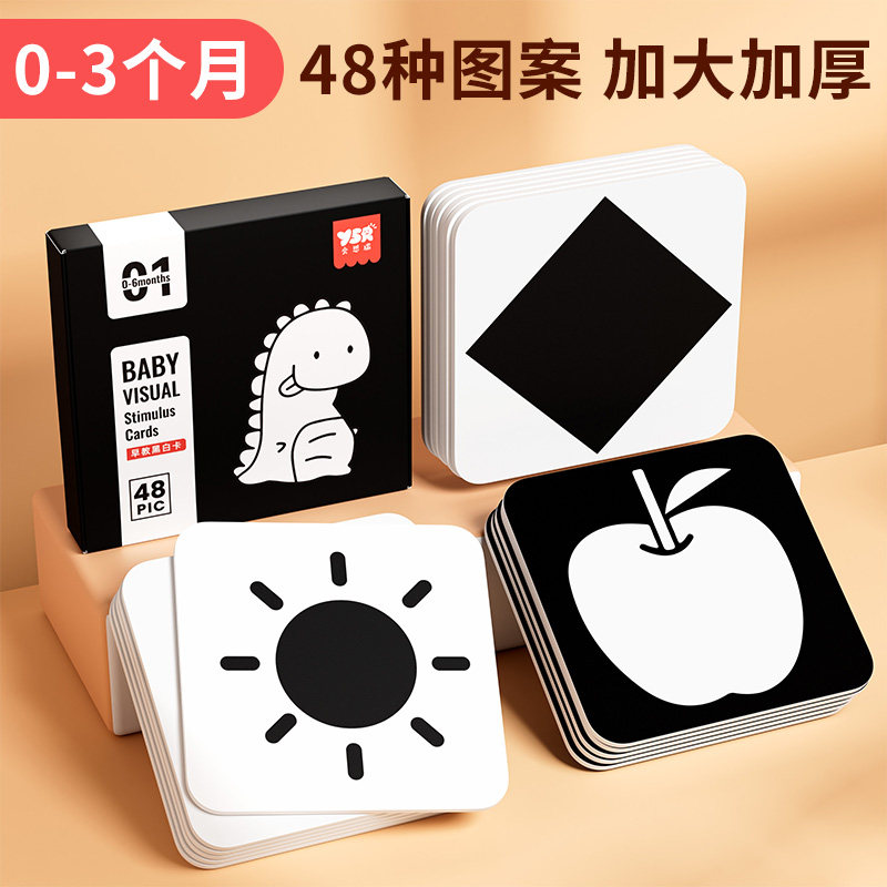黑白卡片婴儿早教卡新生的儿视觉激发卡0到3个月宝宝追视彩色玩具