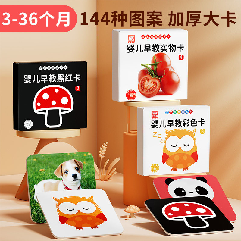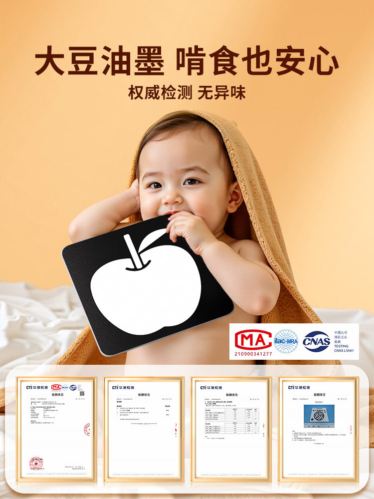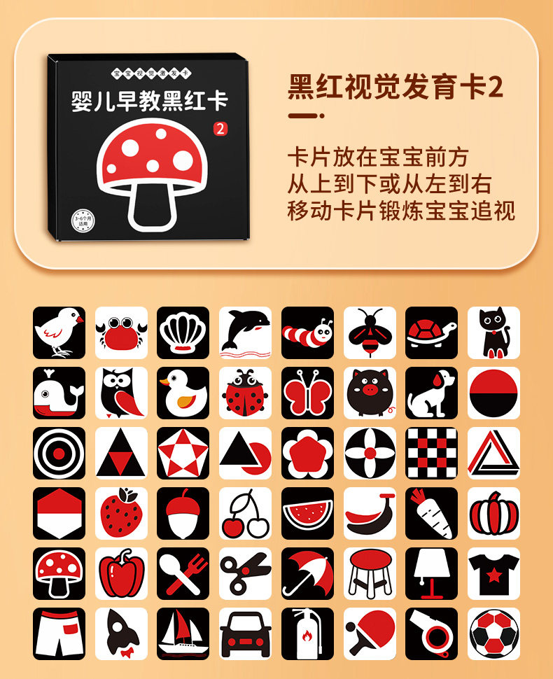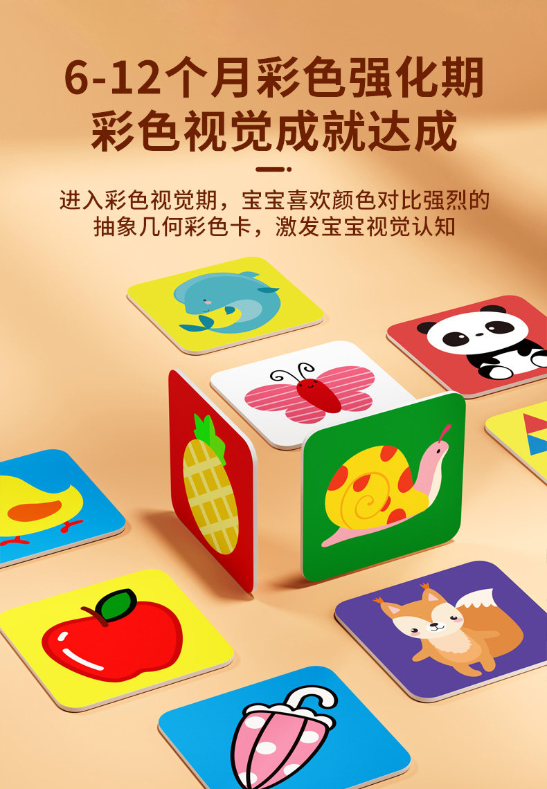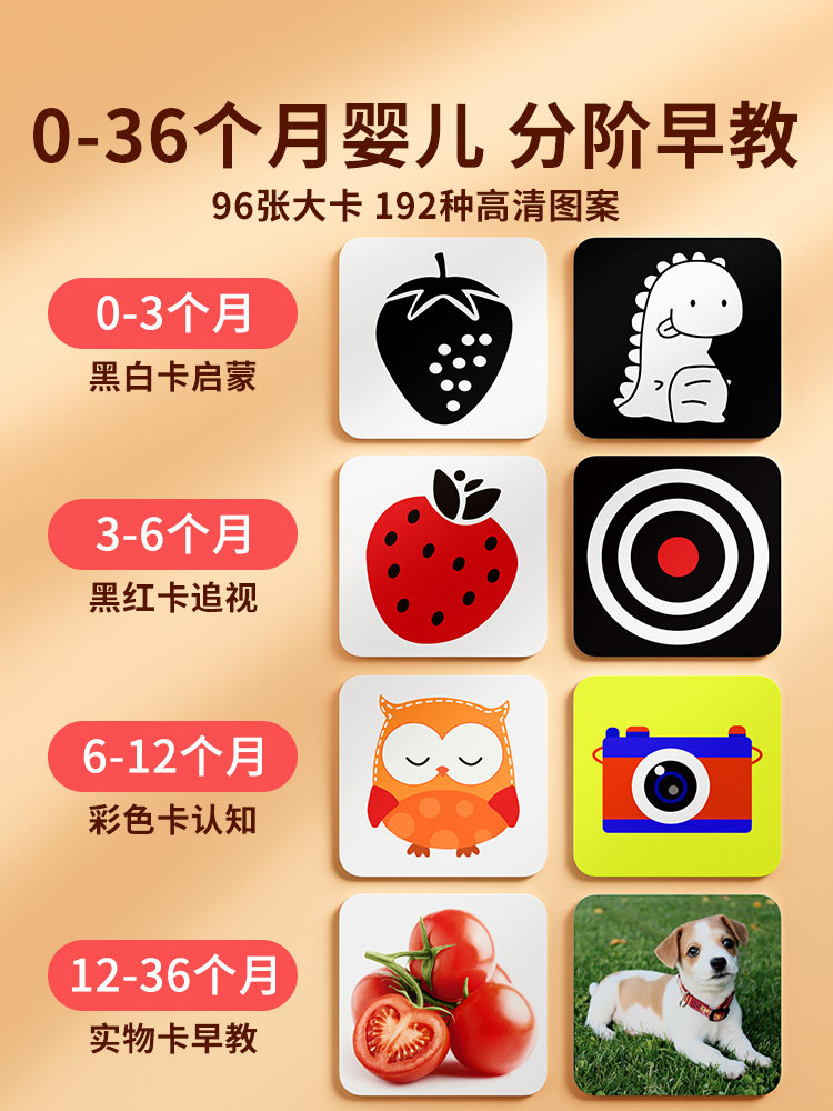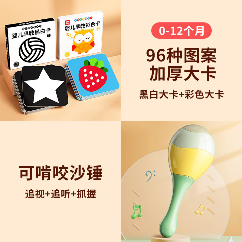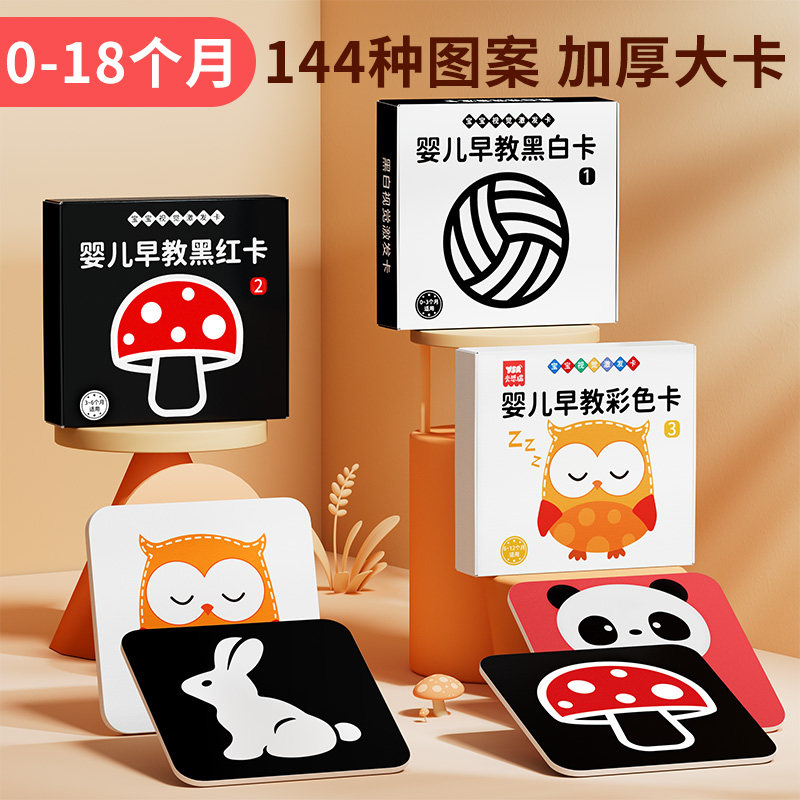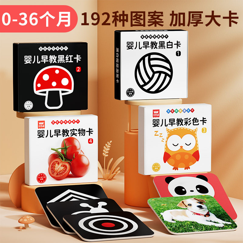 黑白卡片婴儿早教卡新生的儿视觉激发卡0到3个月宝宝追视彩色玩具