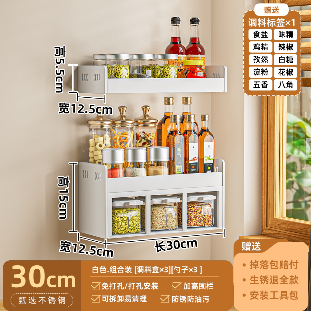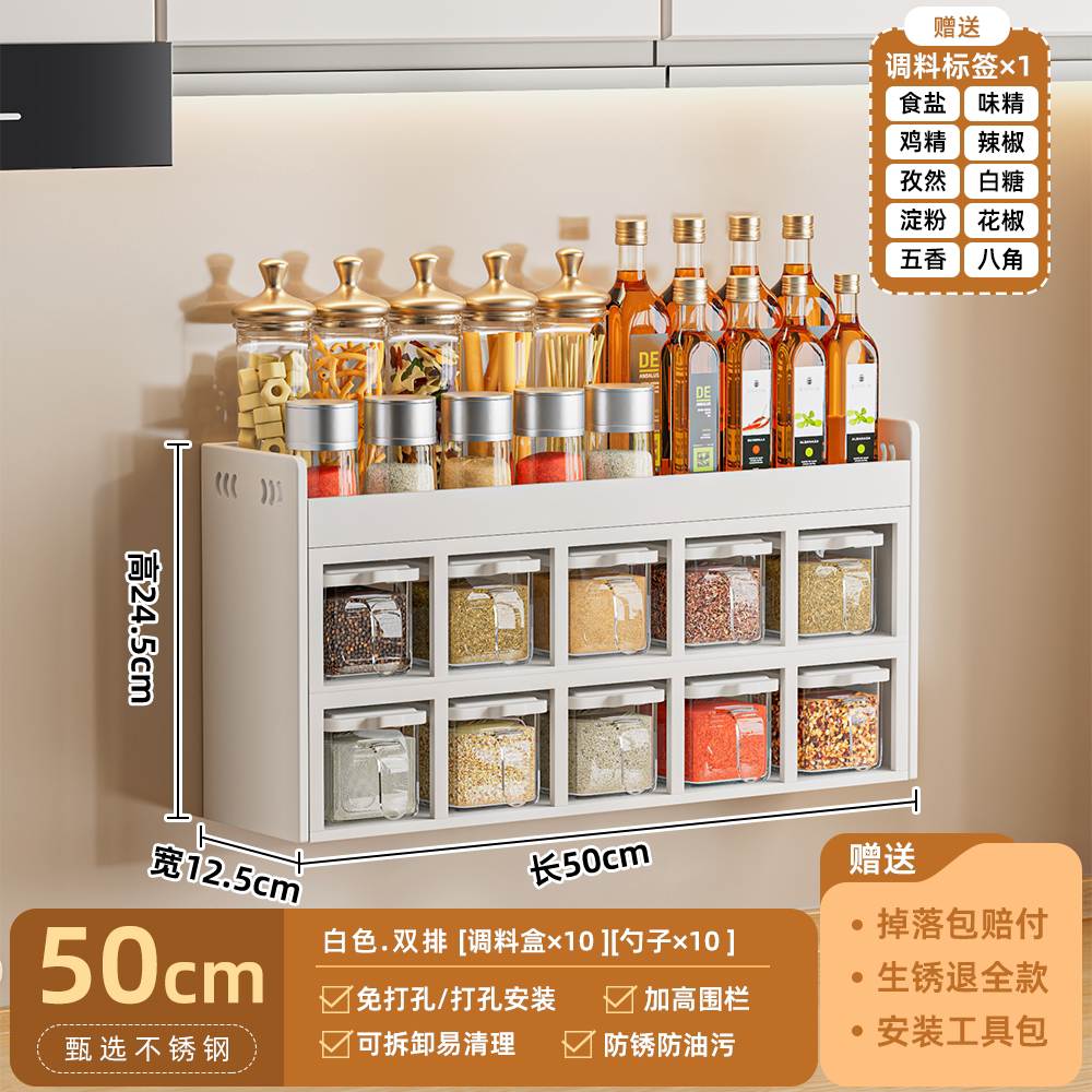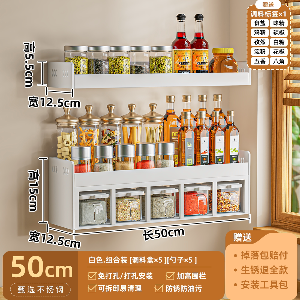 厨房调料置物架免打孔壁挂多功能调味品组合套装调料盒罐厨房家用