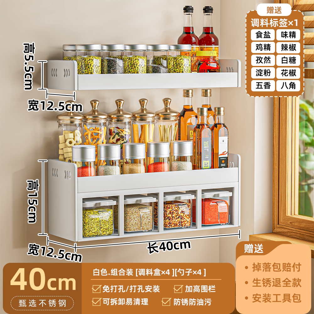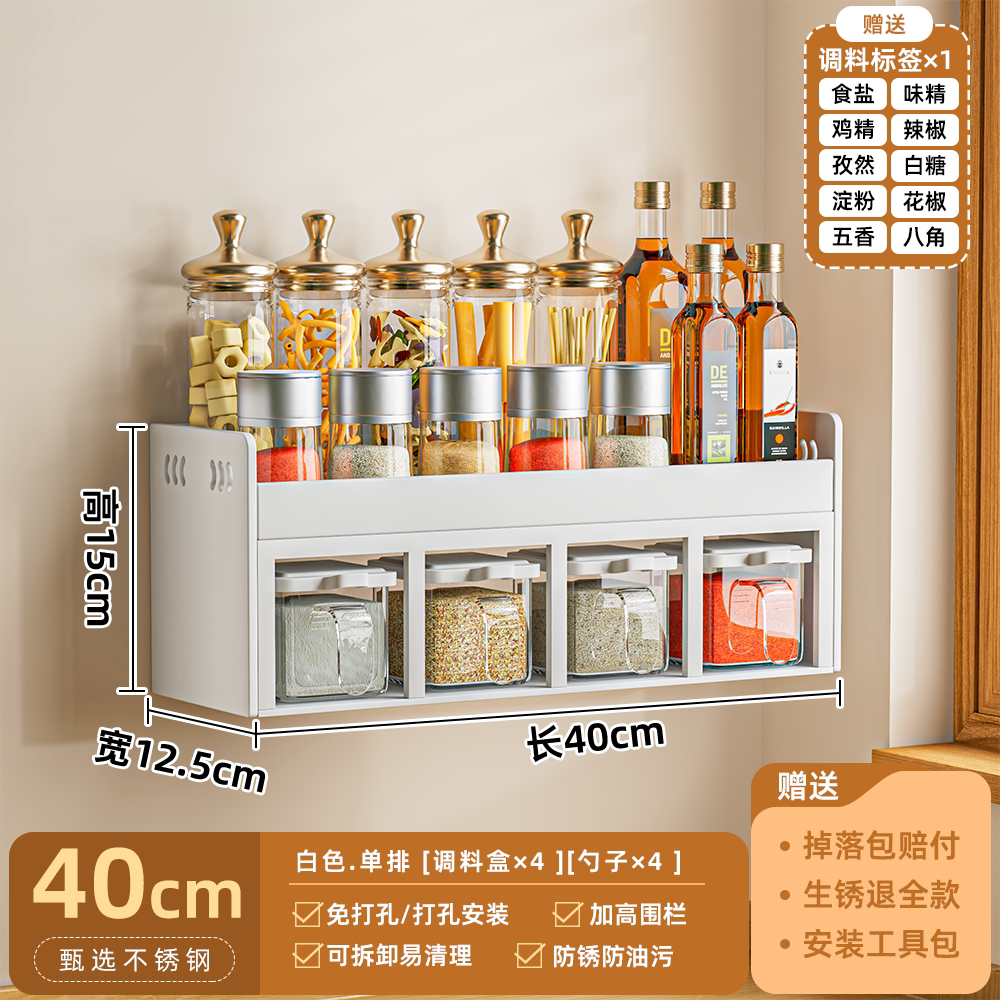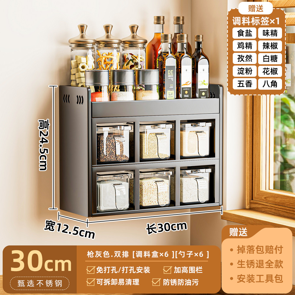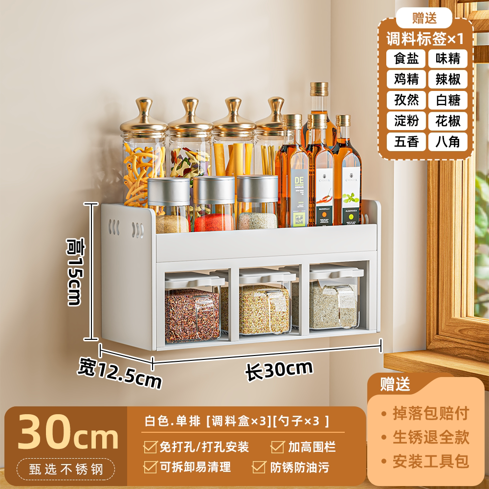 厨房调料置物架免打孔壁挂多功能调味品组合套装调料盒罐厨房家用