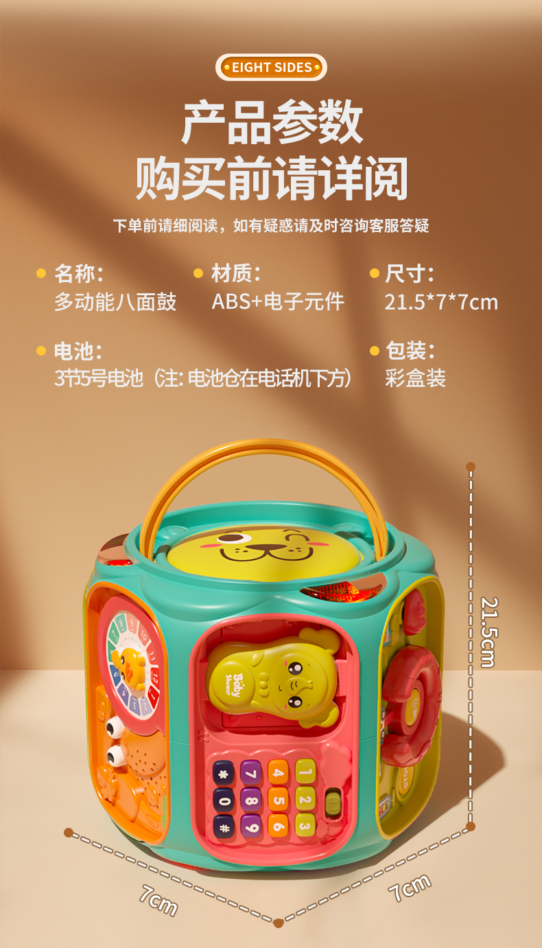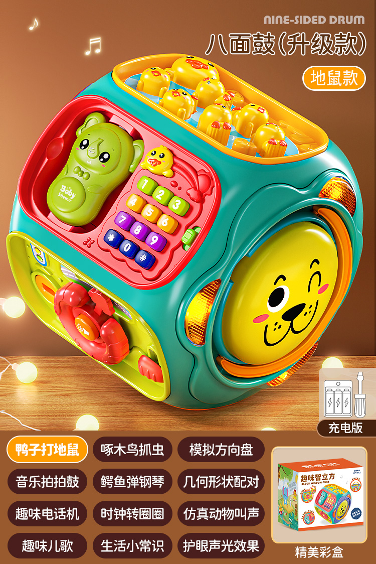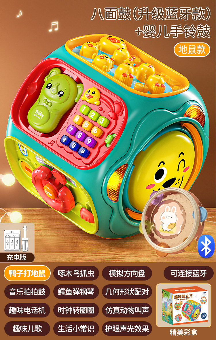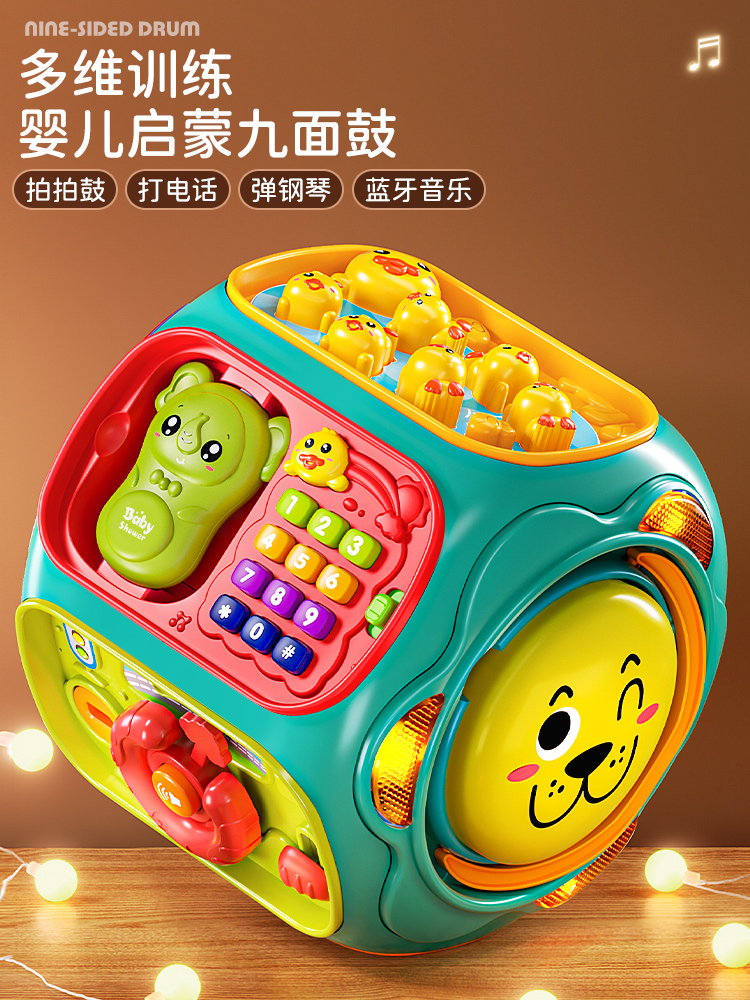 婴儿手拍鼓六面体七多拍拍鼓益智0一1岁6-12个月宝宝儿童早教玩具