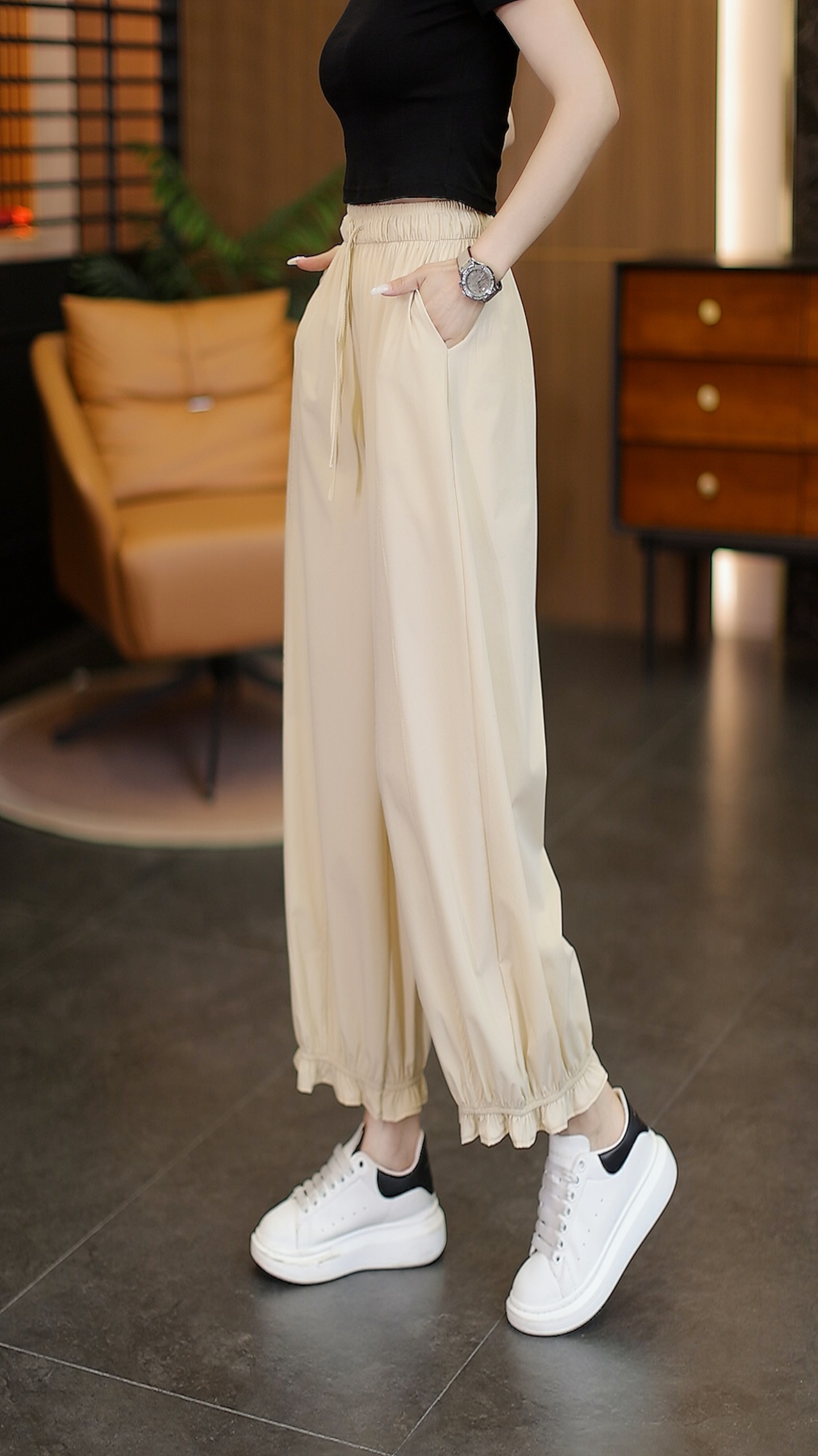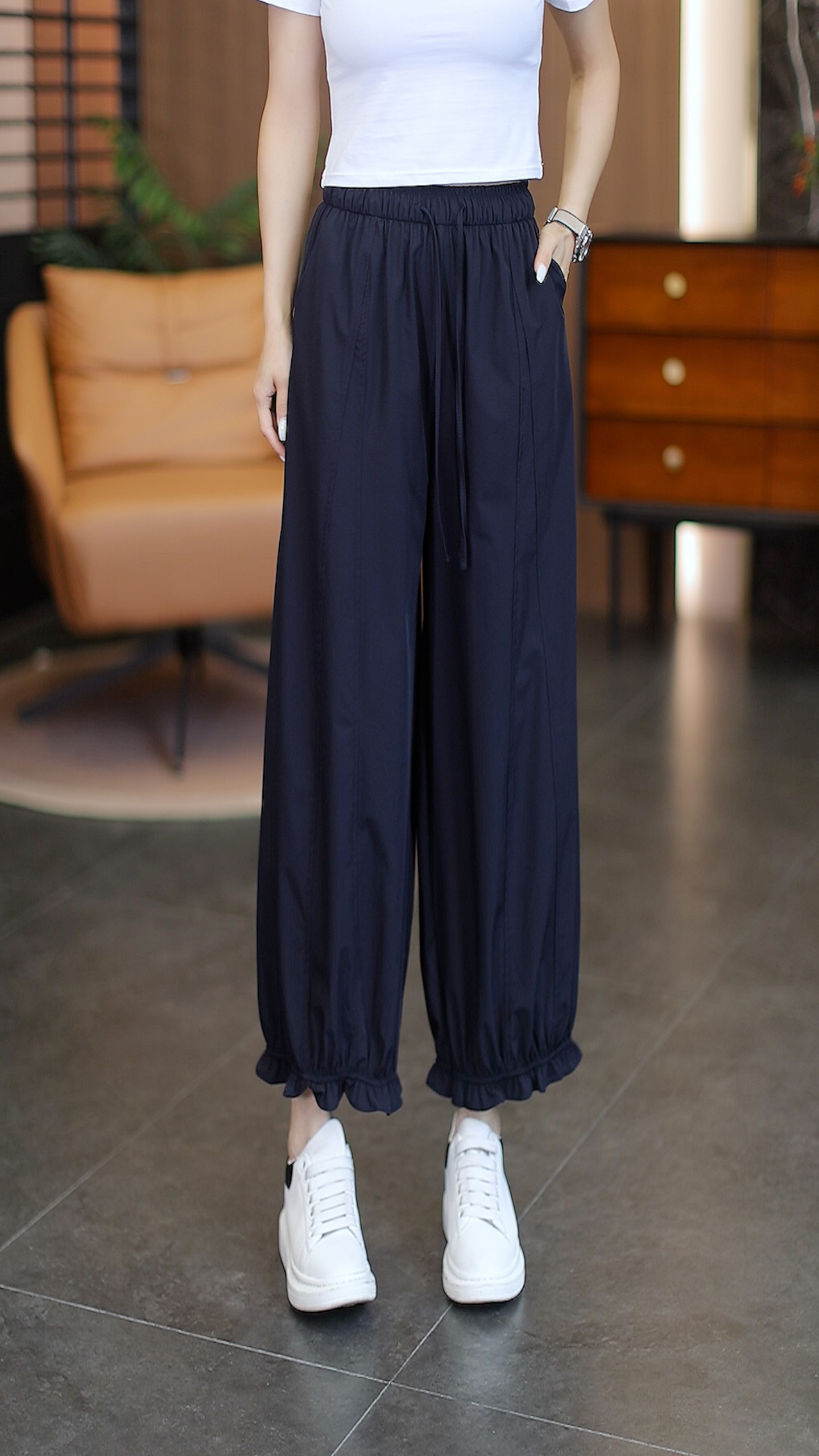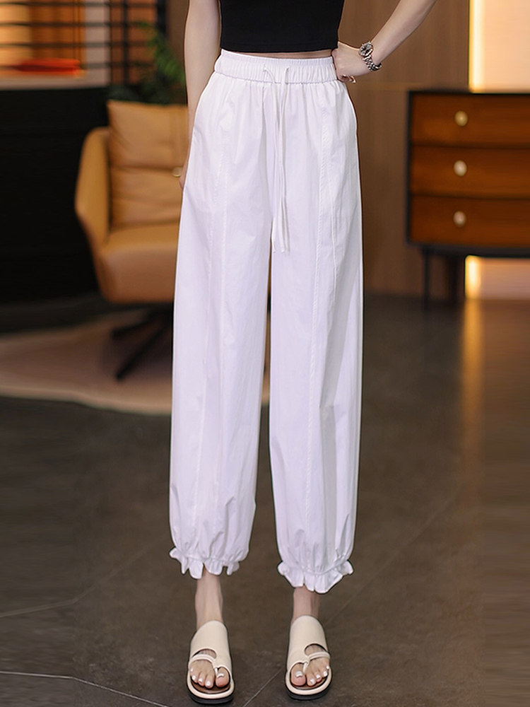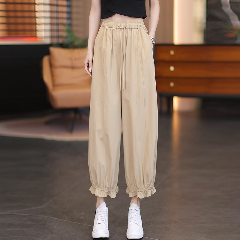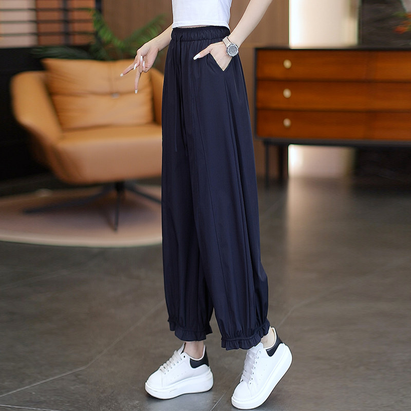 冰丝花边灯笼裤女夏季2026新款高腰宽松设计感裤子垂感防晒花苞裤